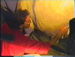 Breve frattaglia (35 sec.) da nastro deteriorato risalente al 1988 c.a. Lavoro in location a molti Km da Milano, la regia (inglese, non ricordo il nome) richiede un carrello tra gli oggetti presenti sul tavolo con l'obbiettivo a pochi cm dal piano ma la Ronford 7 non è presente nel corredo macchina da presa, alla ricerca di una soluzione non ho trovato di + immediato che segare un cubo , fissarlo alla normale testata appesa alla rovescia per fissare poi la macchina da presa all'interno del cubo , il DoP , anch'egli inglese e con il quale stavamo facendo diversi lavori in quel periodo, si è subito fatto tradurre da Rusty due parole per "battezzare" quella che effettivamente sembrava una cuccia per il cane ![]()